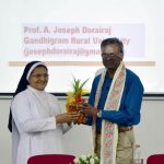 The Resource Person Prof. A. Joseph Dorairaj, School of English and Foreign Language, Gandhigram Rural Institute, Tamil Nadu was felicitated by the Vice Principal Dr. Sr. M. Tanisha A. C with a memento.