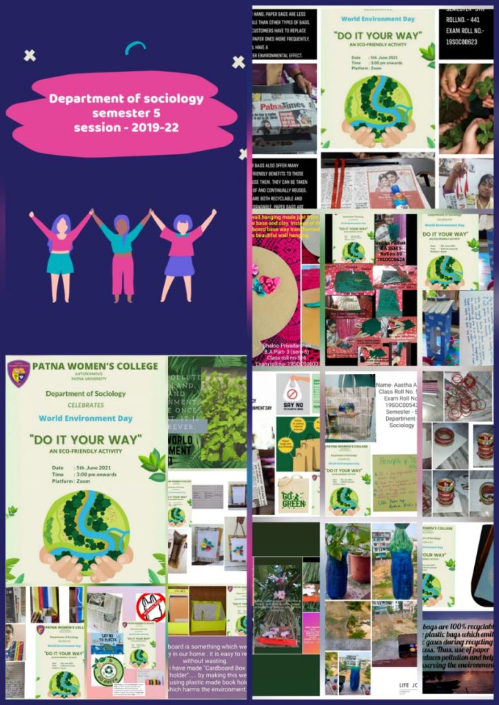 Department of Sociology organised an Eco-friendly Activity named “DO IT YOUR WAY” the students of both 2nd and 5th semester on the Occasion of World Environment Day on 5th June 21.