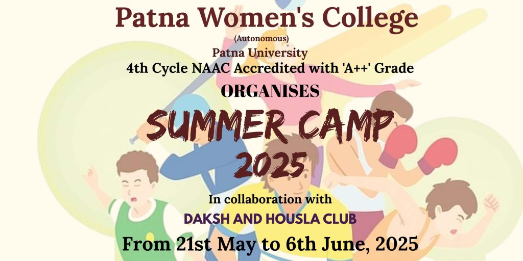 B.Ed Semester-I (2025-27) Examination Form Link New  B.Ed Semester I Examination Fee & Time Table Notice New  UG/PG/MCA Semester IV Admission Fee Notice New  UG Semester VI Admission Fee Link New  Semester I Scrutiny Notice New  Date Extended till 18 December for International Conference 16th & 17th Jan 2026 Link Register Here New  PWC 4th Annual Convocation Notice New  Annual Alumni Meet 2025 Registration Notice New  Contribute to MELAK 2025: Literary Corner & Memory Walk New  PM Vidyalaxmi (Education Loan) Scheme Link New  SWAYAM-NPTEL ENROLLMENT July -Dec 2025 New  NAAC REACCREDITED WITH A++ CGPA OF 3.51 New    Patna Women’s College gets remarkable ranking in MDRA – India Today Best Colleges 2025  Corona Crusaders College Magazine   Alumni Association Life Membership/Contribution Form Link   Patna Women's College is ranked at a rank band of 101 - 150 in the NIRF 2025 Ranking under College category