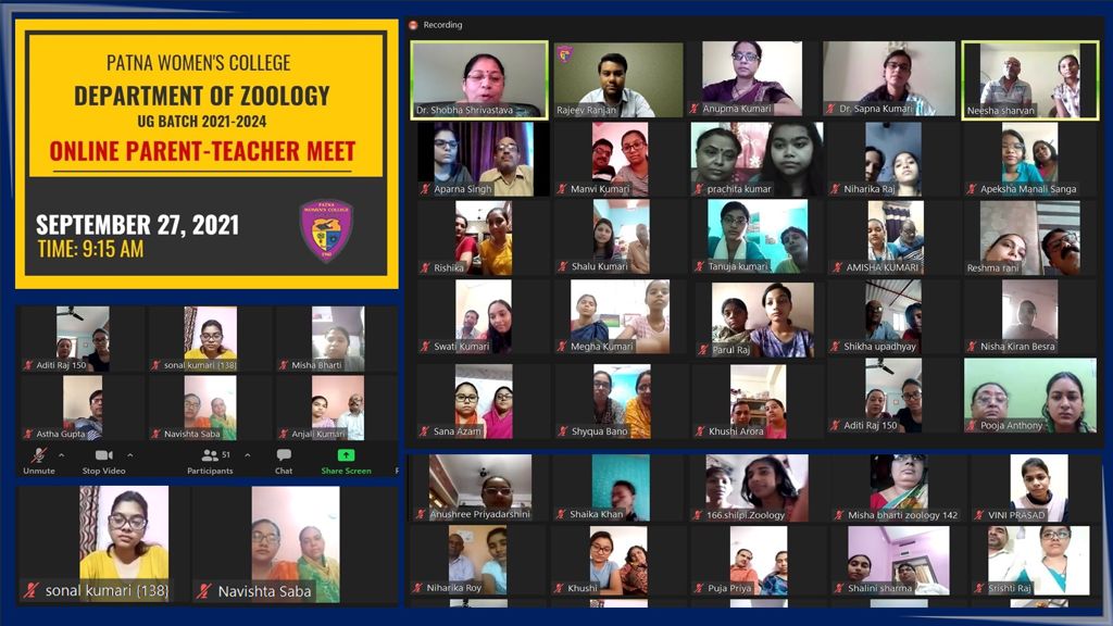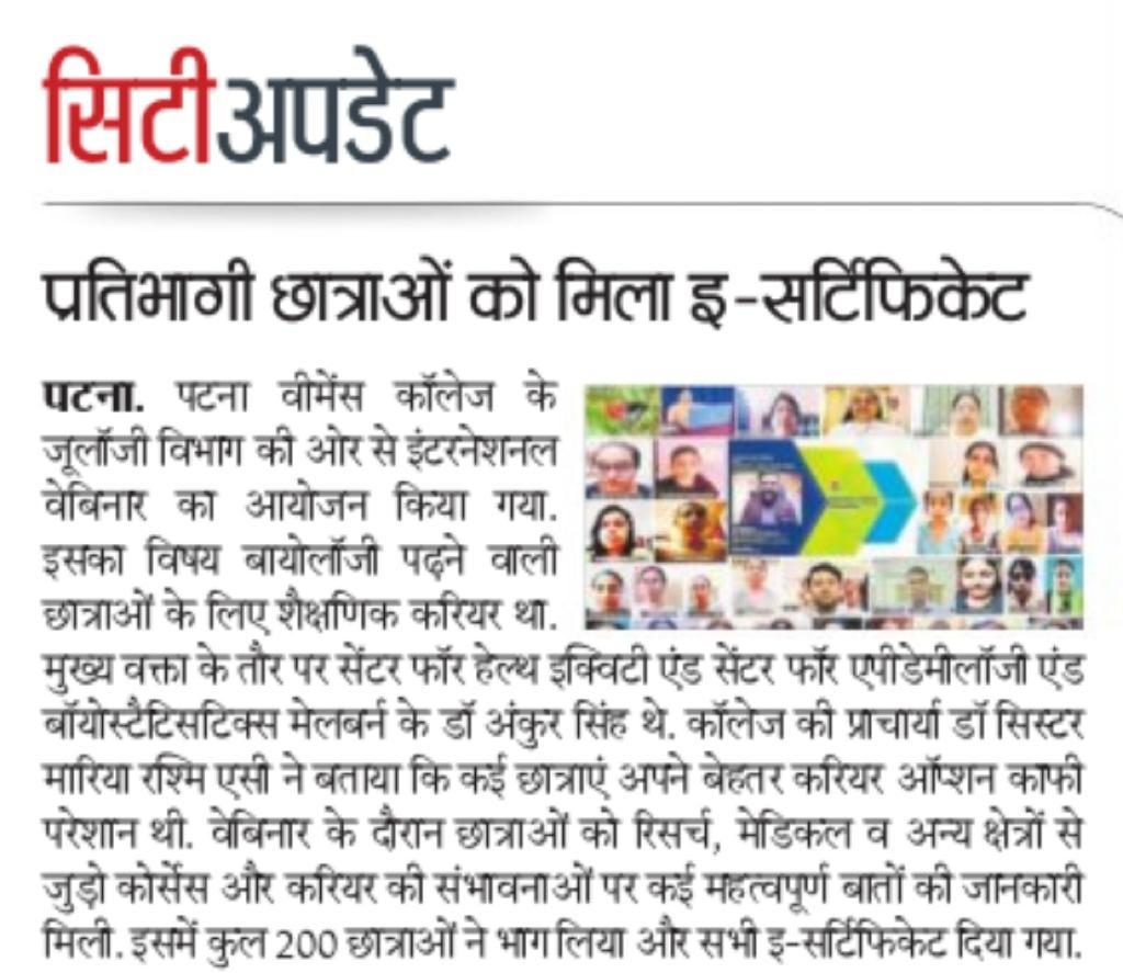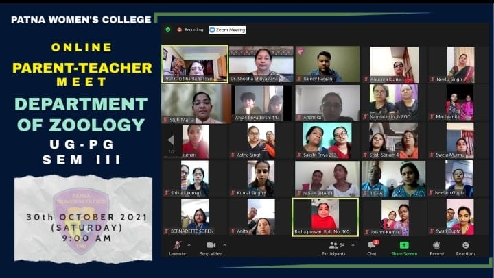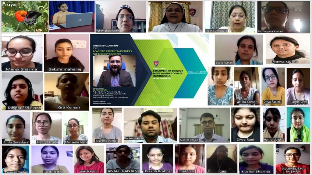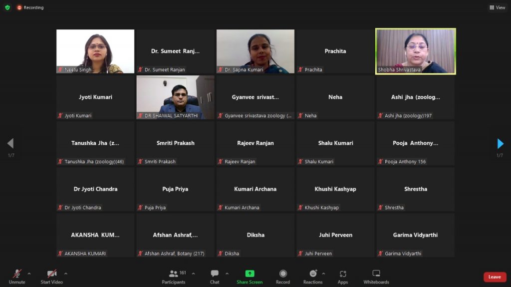 The Department of Zoology, Patna Women’s College, Autonomous, Patna University, Patna organised an International Webinar on the Topic : Academic Career Trajectories for Biology Students on 11.06.20.