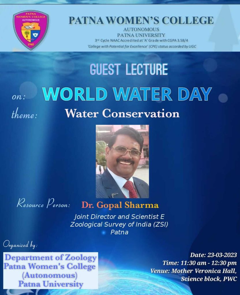 PWC organized a DBT sponsored Guest Lecture on the Topic: ‘Water Crisis and its Conservation’ on 24.08.2019. The Speaker was Dr Gopal Sharma, Dy Director, ZSI, Patna, Bihar and Jharkhand.